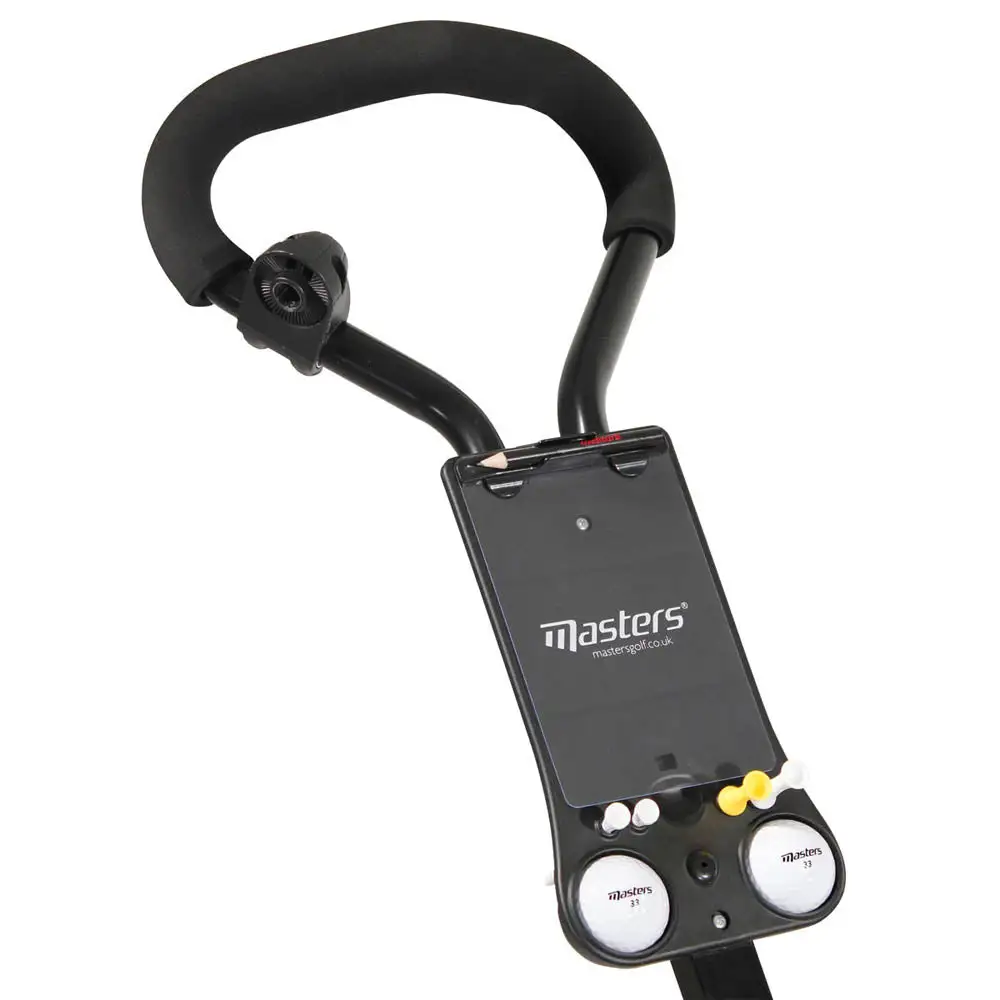 All the essentials are to hand golf with a clip holder for scorecards and various holes for tees, balls and pencils.