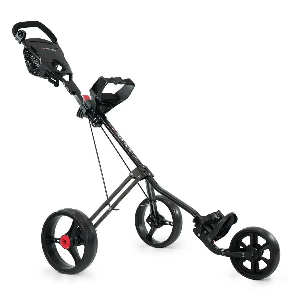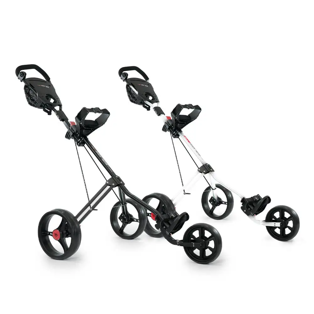 The 5 Series 3 Wheel Push Trolley features a sturdy frame and high load capacity. It can support the shape and weight of any cart bag and glide easily over most terrain.
