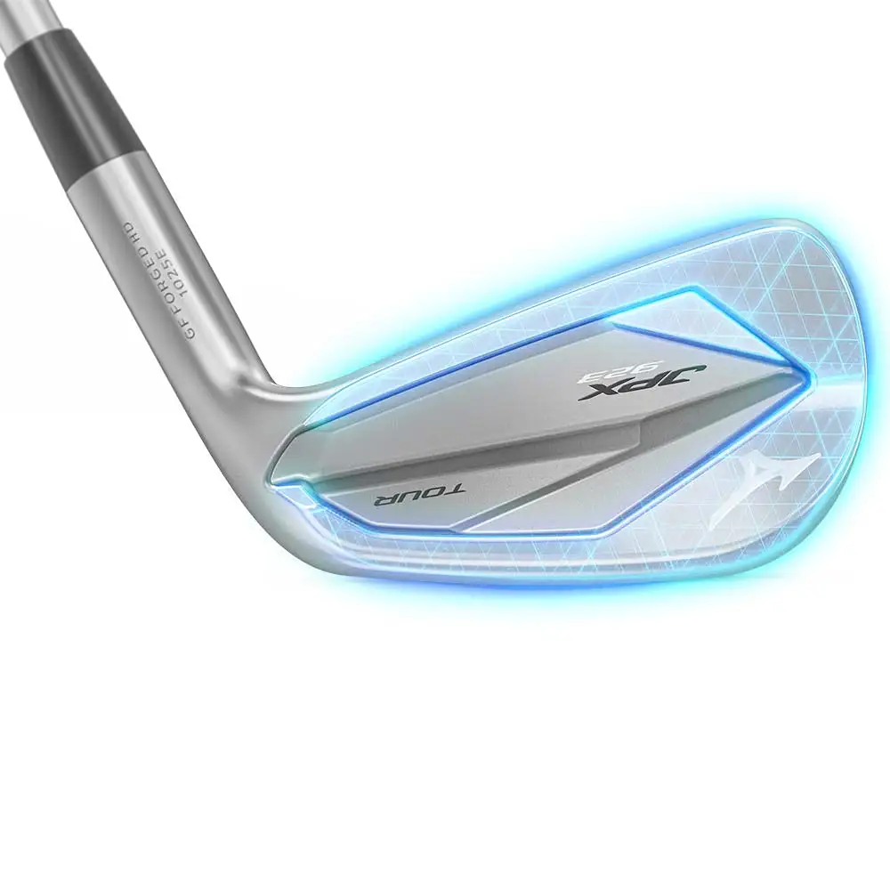 Consistently Mizuno’s most-played iron model in professional golf and still one-piece Grain Flow Forged in Hiroshima Japan, the JPX923 Tour adds a copper underlay for an even smoother sensation at impact. The JPX923 Tour also presents a narrower top line and sole in tandem with more rounded trailing edge for cleaner turf interaction. Player enhancements made possible through the introduction of Mizuno’s new ‘V-Chassis’.