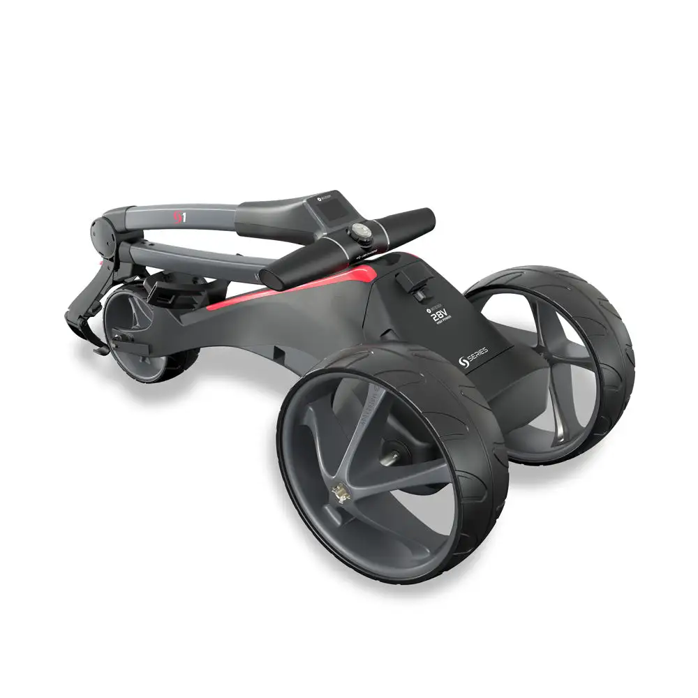 The New S1 Lithium trolley is powered by next-generation 28V technology, the all new S1 combines sporty styling and simple 1-step folding with impressive functionality. Standout features include CLICK âNâ CONNECT⢠cable-free battery technology with auto-disconnect and quick-access port for onboard charging. Comes in 2 battery sizes 18H & 36H ultra making this the trolley of choice for 2023.