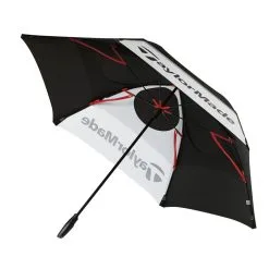 Srixon Golf double canopy golf umbrella is a robust and lightweight golf umbrella design to keep you and your equipment dry. Comes in a stylish design and 68″ dual canopy design. Standard size rubber handle so fits in all holders and finished off with fibre glass shaft.