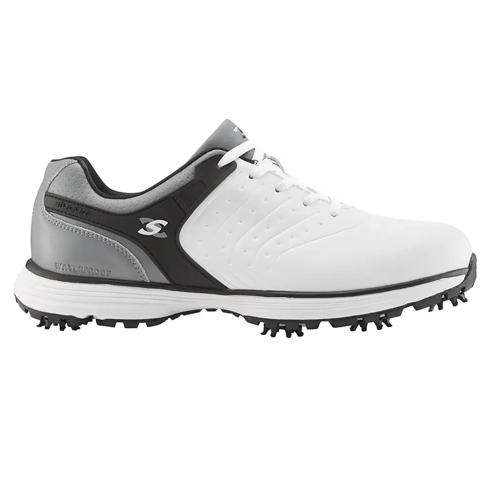 Evolve Tour II Spiked is a fully waterproof shoe incorporating Stuburt DRI-Back membrane technology and constructed from supple full grain leather for premium levels of playability. Features cushioning throughout the shoe for long lasting comfort and support and a durable 7 spiked cleated outsole which offers maximum grip and traction through the swing. 1 year Waterproof Guarantee